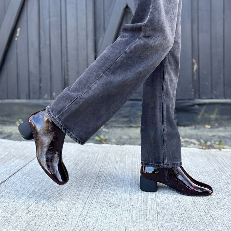 The ankle boot for a refined statement. Livia is crafted from patent pull-up leather in a cherry red colour. Details include a zip-side fastening, chrome-free leather insole and 50 mm heel.