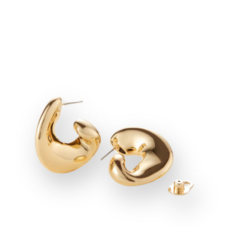 Hoop earrings with an organic twist. Hollowed out for a lighter weight, they are paired with our best selling Lobe Lifters for additional support. Finished in high-polish gold.