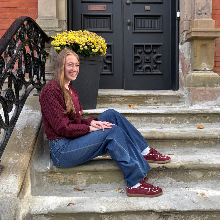 The delicate crochet features on the Tb.490 bring a romantic twist on this classic urban style. Crafted from cream suede and designed in a low-top silhouette sitting on rubber soles, the style is completed with classic features, including exposed stitching and the logo embossed across the tongue and sides. Keep it simple with classic shoelaces or elevate the romance with bows, both included.