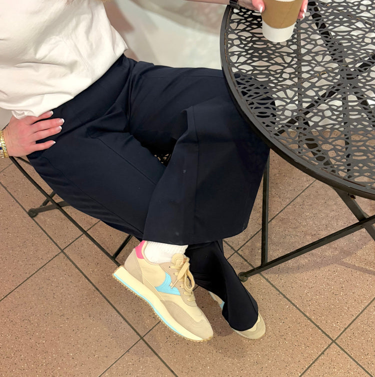 Multicoloured women's trainers made from nylon with tonal suede overlay panels. Side victoria "V" and heel panel in faux leather tones. Double lace-up fastening: one tonal pair and another matching the heel panel. Two-tone EVA sole with caramel-coloured serrated rubber tread.