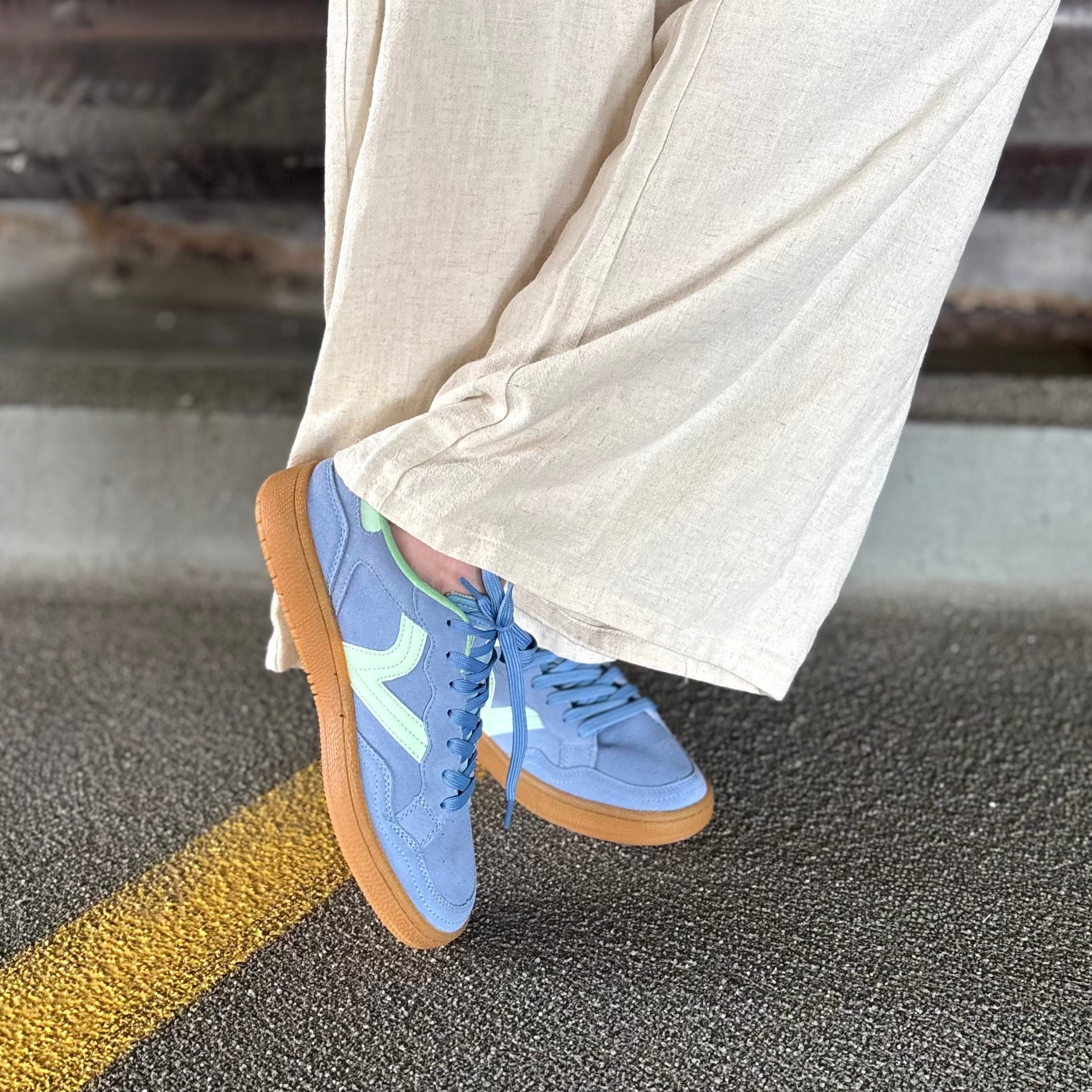 Soft girl era but she wears good sneakers ❤️✨The ASTER SNEAKER in Nude Suede by @victoria_shoes 👟
