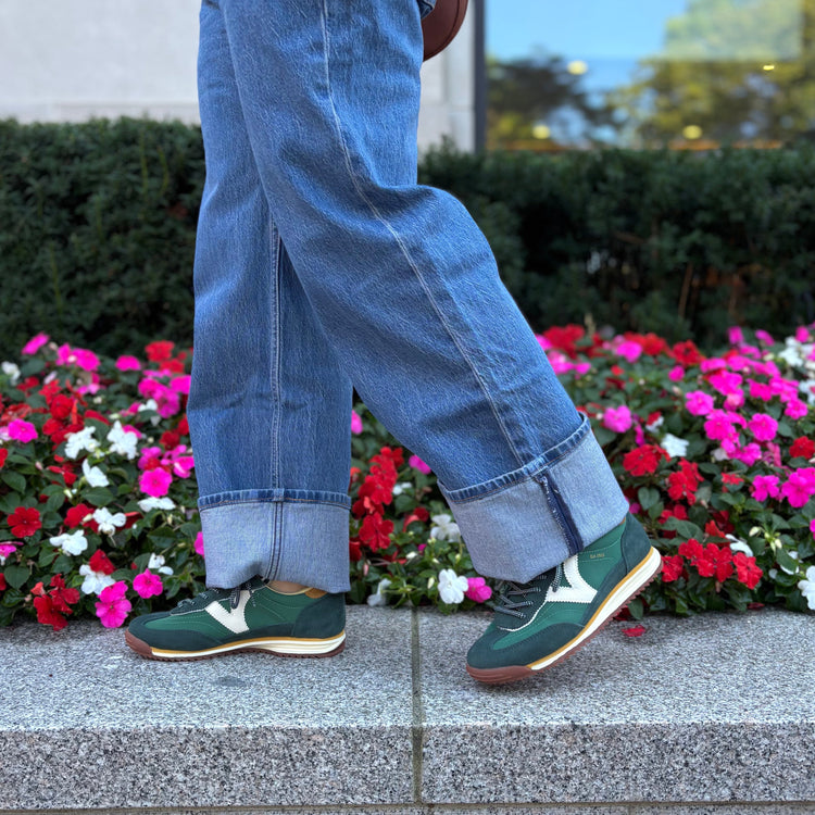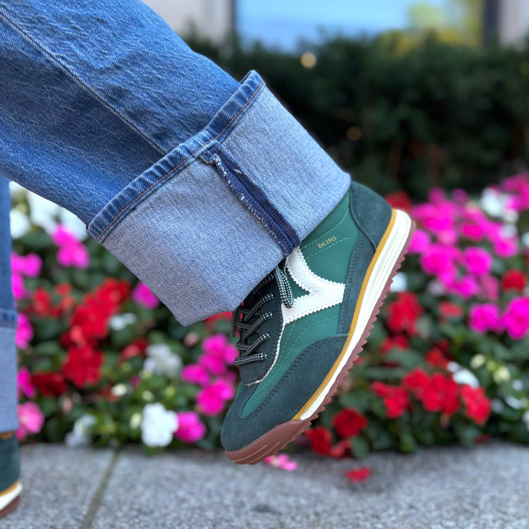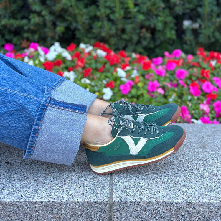 Sneakers for women made of nylon with tone-on-tone suede panels and synthetic details. Side V and heel piece with the brand logo in contrasting leather-effect colors. Closure with speckled round laces in tone. Two-tone sole and caramel serrated tread that provides better grip.